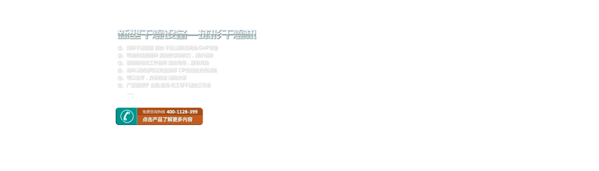 球形干燥設(shè)備 混合.干燥.清洗無(wú)死角.GMP設(shè)備 可加熱貼面攪拌 另加安裝破碎刀,減少結(jié)塊 較高的有效工作容積 混合均勻,沒(méi)有死角 物料.清洗液可以完全排盡 CIP在線(xiàn)全方位清洗 可以全開(kāi),方便檢查 清洗方便 廣泛適用于 食品.醫(yī)藥.化工 等干燥加工行業(yè) 設(shè)備模擬流程 設(shè)備選型 技術(shù)參數(shù) HCQG球形干燥機(jī) |